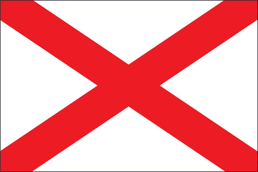 Alabama Flag. Heavyweight durable nylon flag finished with a strong canvas heading and two brass grommets. On February 16, 1895 the Alabama legislature authorized the crimson cross of St. Andrews on a field of white for their state flag. Reminiscent of the Confederate battle flag, it was designated that the crimson bars were not to be less than six inches broad and to extend diagonally across the flag.