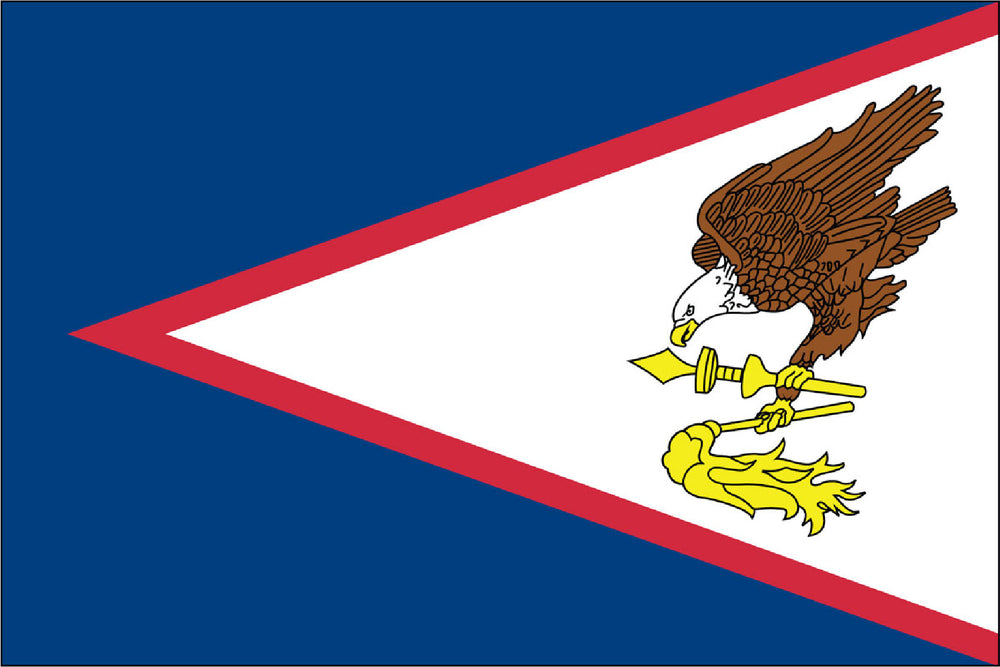 American Samoa. Heavyweight durable printed nylon flag finished with a strong canvas heading and two brass grommets.