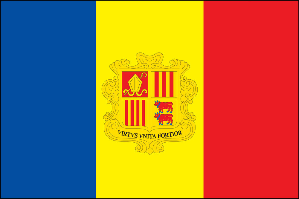 Andorra. Heavyweight durable nylon flag finished with a strong canvas heading and two brass grommets.