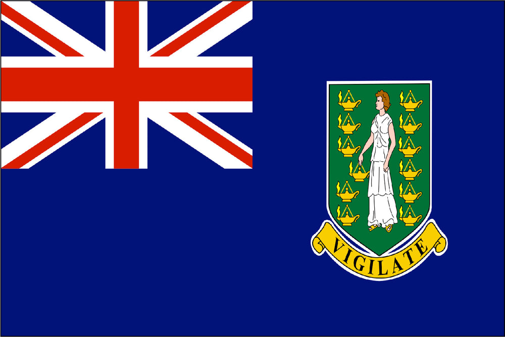 British Virgin Islands. Heavyweight durable printed nylon flag finished with a strong canvas heading and two brass grommets.