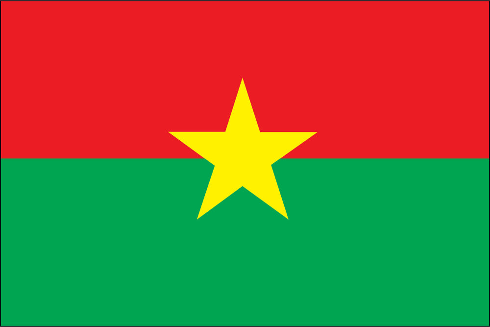 Burkina Faso. Heavyweight durable nylon flag finished with a strong canvas heading and two brass grommets.