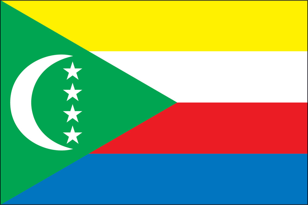 Comoros. Heavyweight durable nylon flag finished with a strong canvas heading and two brass grommets.