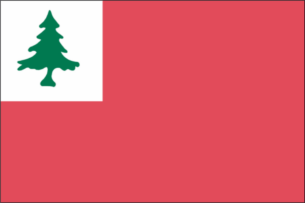 The pine tree has long been a symbol of New England. This particular flag design was flown in the Massachusetts colony. The original flag had a red cross in the canton for the St. George cross. However, after April 19, 1775 with the beginning of the Revolutionary war the cross seemed pointless to many of the more radical colonists and it was dropped from the flag.