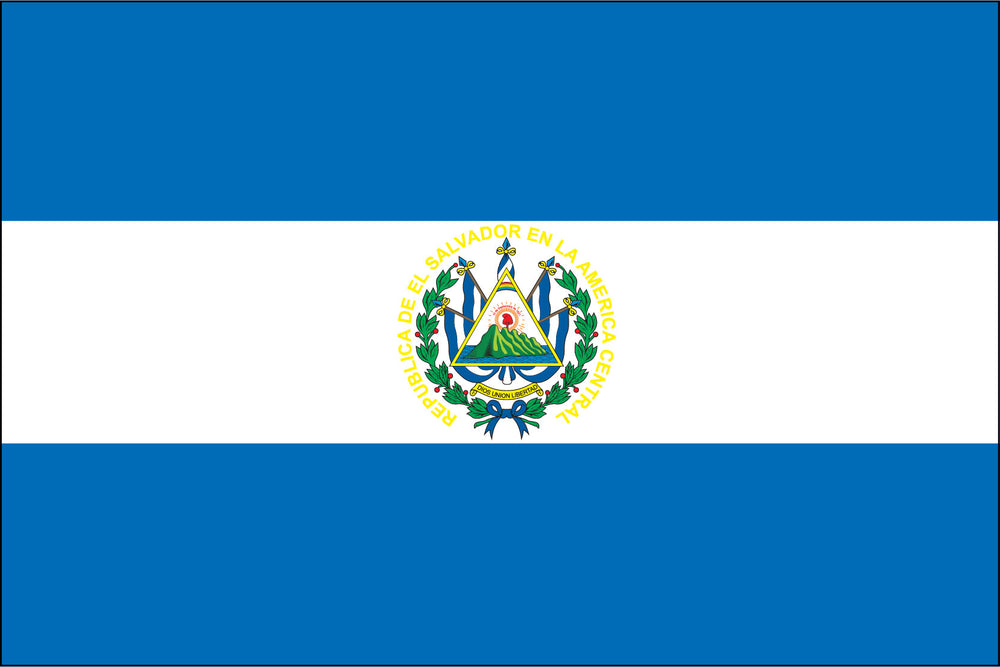 El Salvador (Governmental Seal). Heavyweight durable nylon flag finished with a strong canvas heading and two brass grommets.
