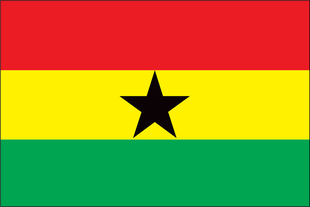 Ghana. Heavyweight durable nylon flag finished with a strong canvas heading and two brass grommets.