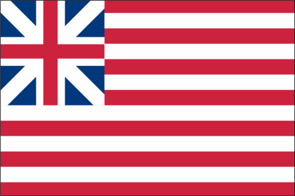 This is considered to be the first national flag of the United States of America. Used from 1775 – 1777. Was raised for the first time in December 1775 on the “Alfred”, a fighting vessel. A year later, it was considered the official flag of the American Naval forces. On New Year’s Day 1776, George Washington ordered it raised on Prospect Hill in Somerville, MA to celebrate the birth of the Continental Army.