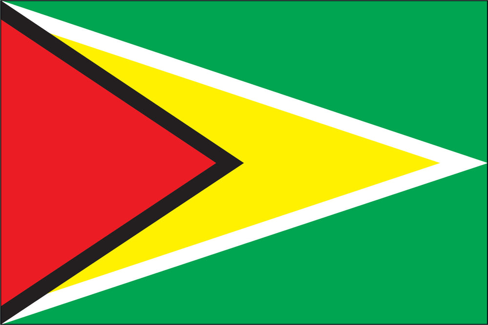 Guyana. Heavyweight durable nylon flag finished with a strong canvas heading and two brass grommets.