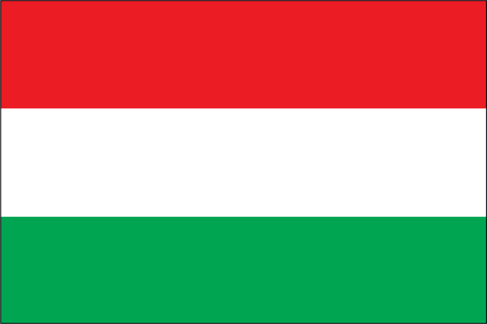 Hungary. Heavyweight durable nylon flag finished with a strong canvas heading and two brass grommets.