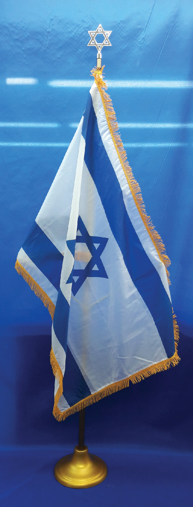 3' x 5' indoor Israel flag. Pole sleeve with gold fringing on three sides. FLAG ONLY. Does not include pole, base, ornament or gold cord and tassel (all available separately or as a complete unit under our Indoor Flag and Pole Sets).