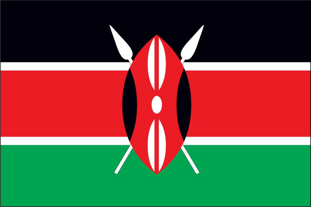 Kenya Flag . Heavyweight durable nylon flag finished with a strong canvas heading and two brass grommets.