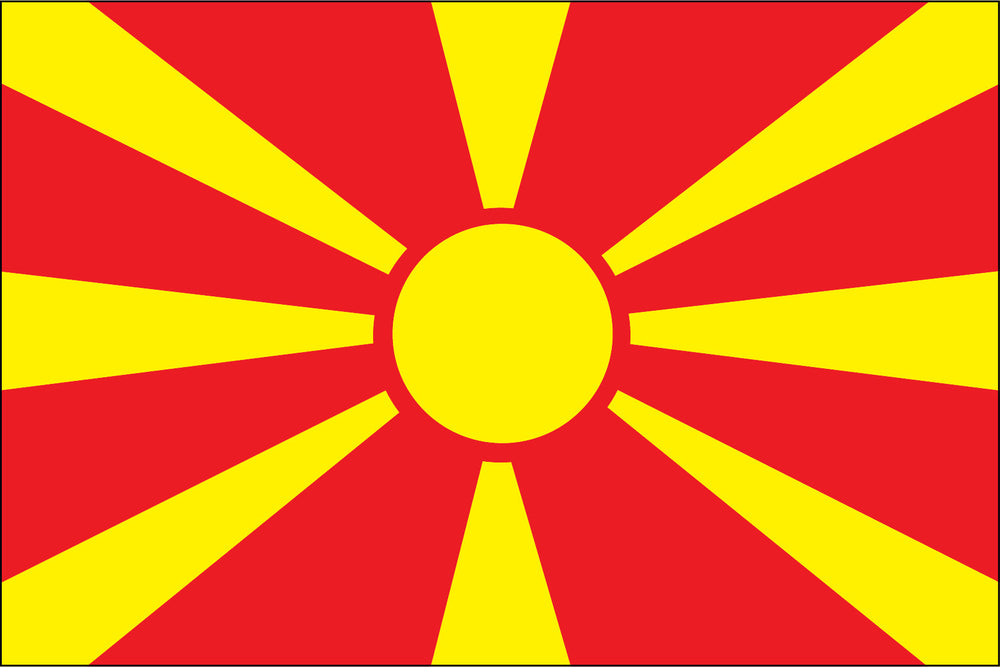 Macedonia Flag. Heavyweight durable nylon flag finished with a strong canvas heading and two brass grommets.