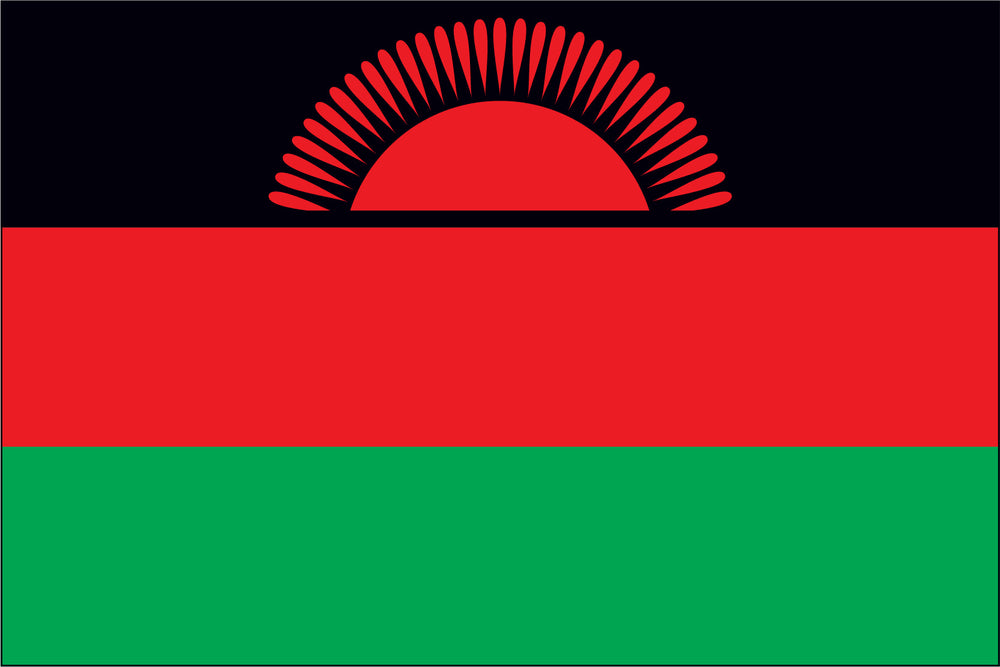 Malawi Flag. Heavyweight durable nylon flag finished with a strong canvas heading and two brass grommets.