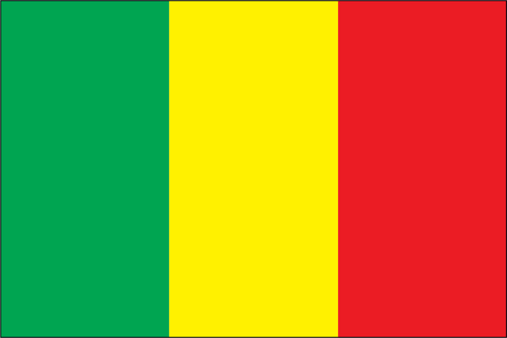 Mali. Heavyweight durable nylon flag finished with a strong canvas heading and two brass grommets.