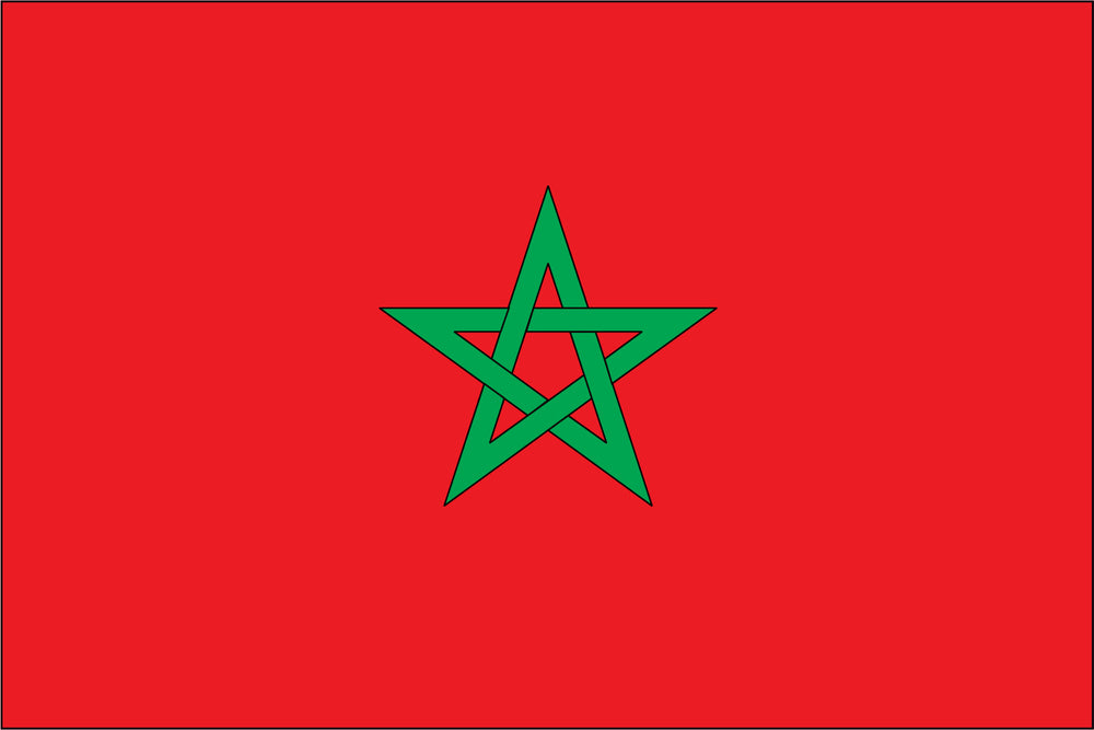 Morocco. Heavyweight durable nylon flag finished with a strong canvas heading and two brass grommets.