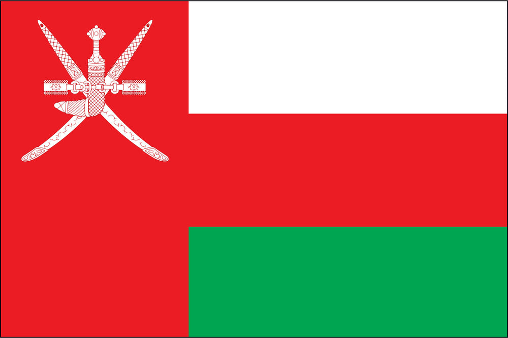 Oman. Heavyweight durable nylon flag finished with a strong canvas heading and two brass grommets.