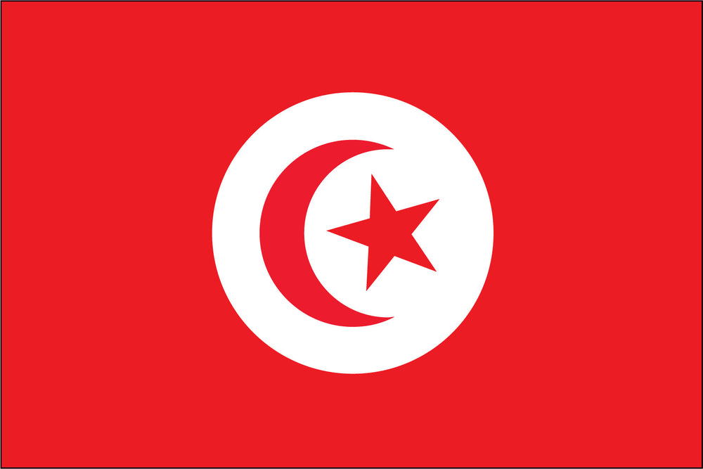 Tunisia Flag. Heavyweight durable nylon flag finished with a strong canvas heading and two brass grommets.